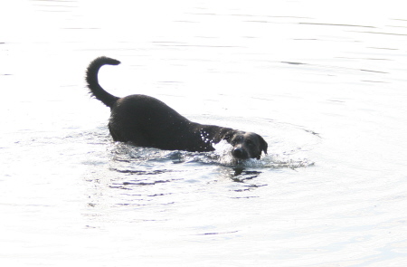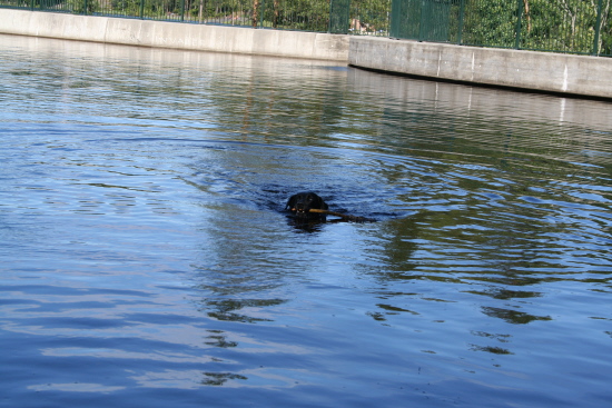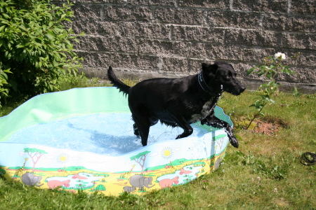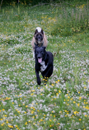 På ettermiddagen gikk vi en tur bort til parken og der møtte hun Balto som hun lekte med, så hun har fått lekt endel også idag.